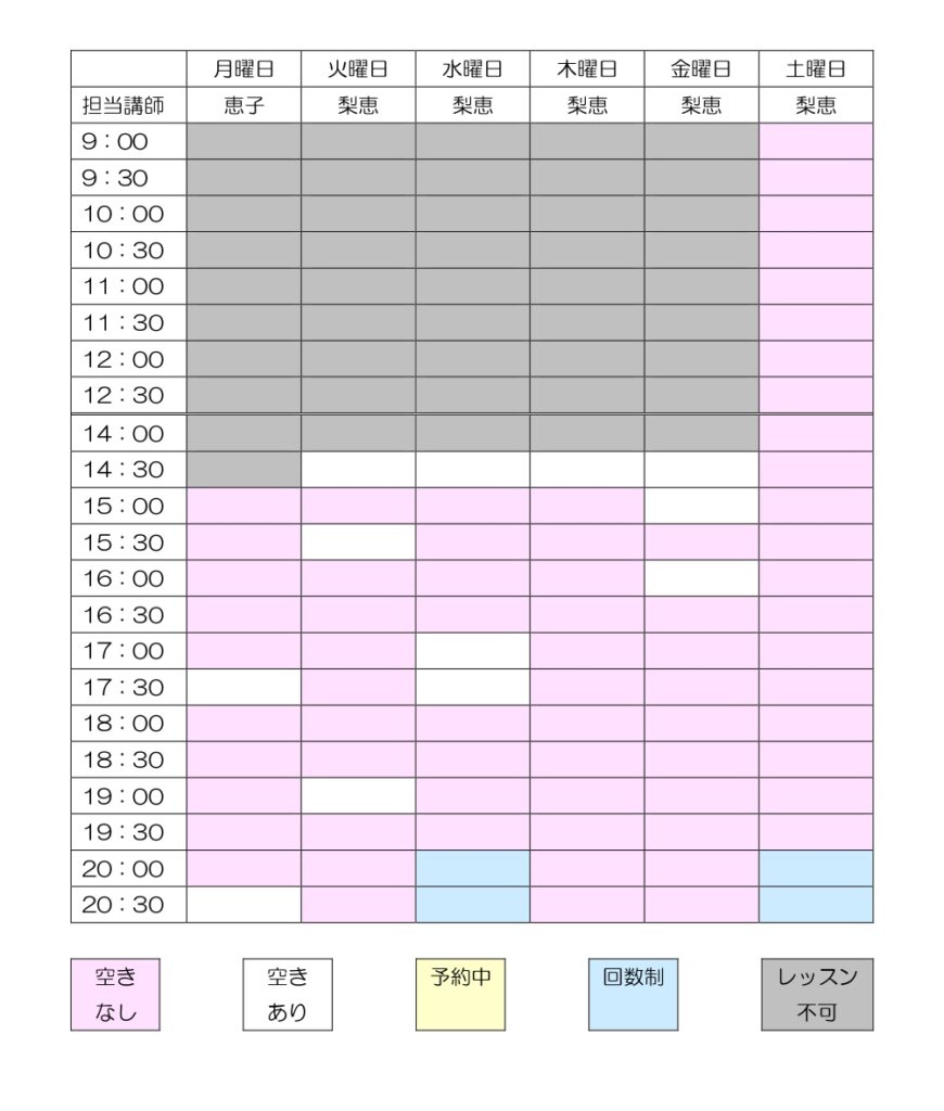※すべてお子様の生徒さんの募集となります。大人の生徒さんの募集は停止中となっております。